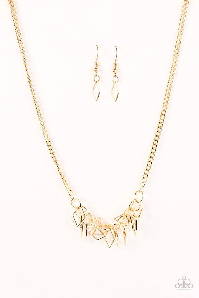 A thick gold chain gives way to a clustered fringe below the collar. Featuring a gold finish, dainty diamond-shaped silhouettes swing from the bottom of the chain, creating a fierce fringe. Features an adjustable clasp closure.