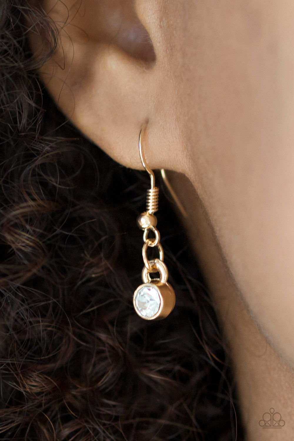 Infused with textured gold frames, glassy white gems delicately link below the collar for a timeless look. Features an adjustable clasp closure.