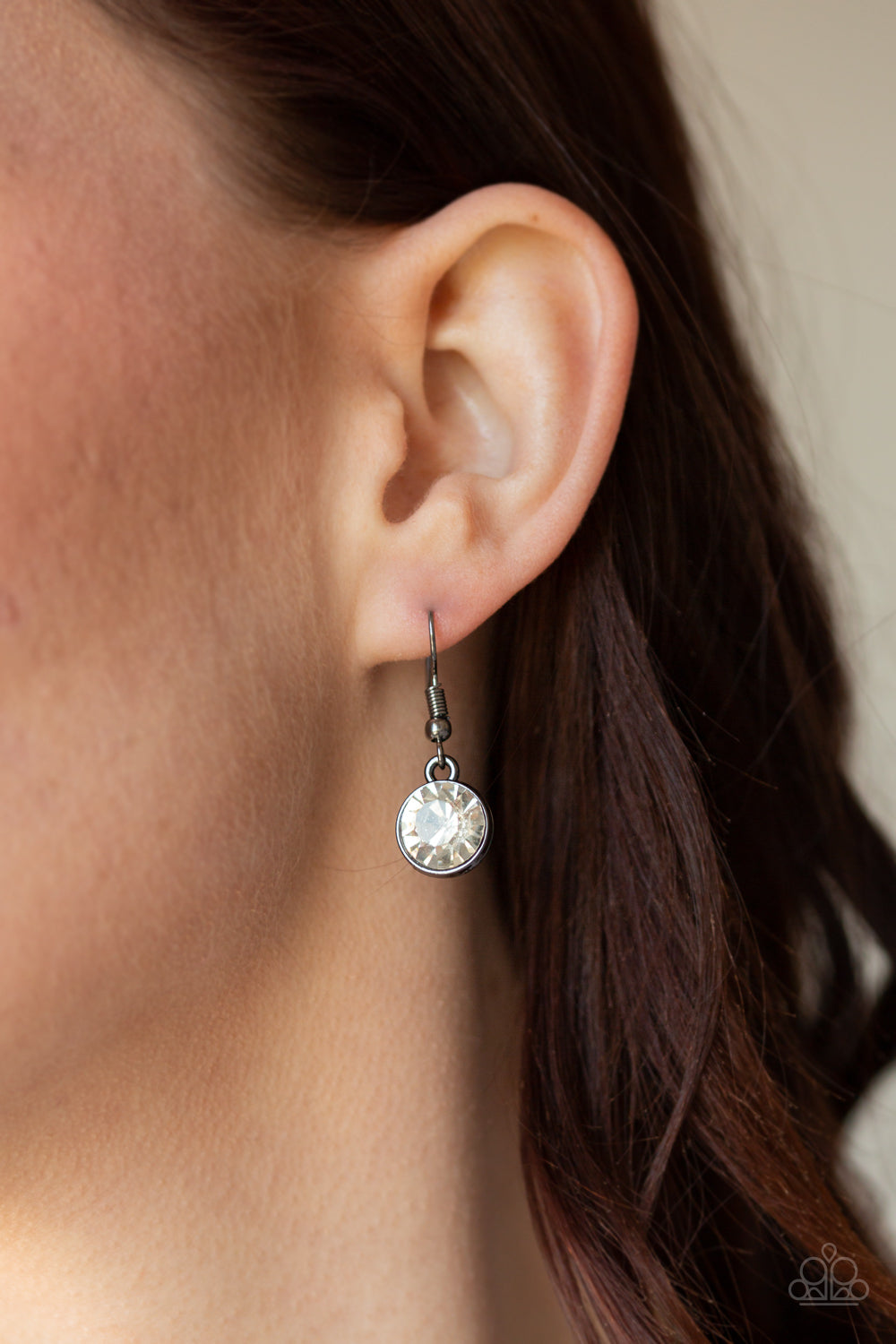 A collection of glassy white rhinestone encrusted frames link below the collar in a timeless fashion. A matching rhinestone encrusted frame and oversized white gem dangle from the bottom, creating a glamorous extended pendant. Features an adjustable clasp closure.