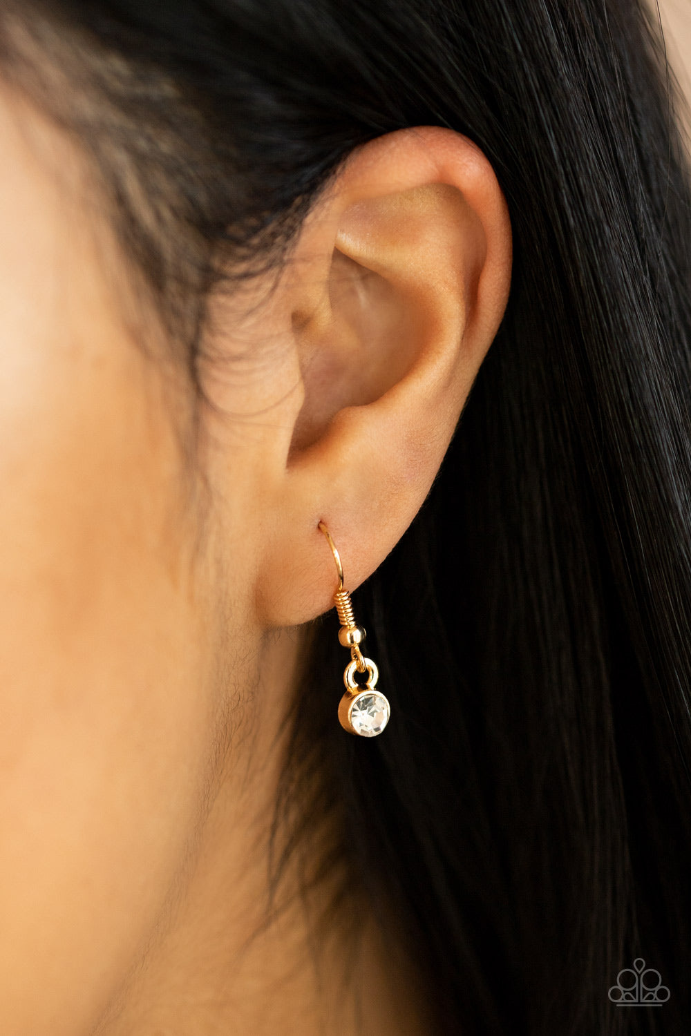 Encrusted in glittery white rhinestones, a sparkly gold key swings from the bottom of a lengthened gold chain for a refined look. Features an adjustable clasp closure.