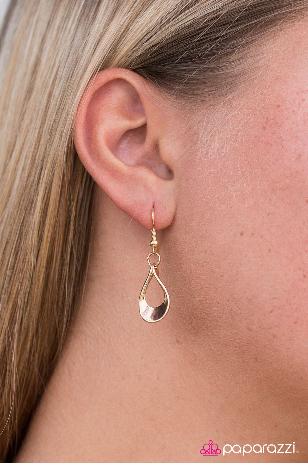 Glistening gold teardrops are threaded along a wire, creating a stationary pendant below the collar. Alternating in different directions, the shimmery teardrops attach to a rounded gold snake chain for a refined finish. Features an adjustable clasp closure.