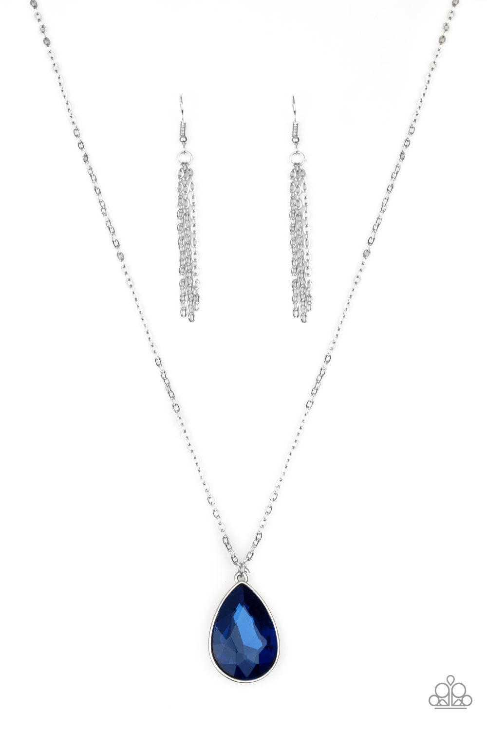 Featuring a sleek silver frame, a dramatic teardrop gem swings below the collar for a glamorous look. Features an adjustable clasp closure.