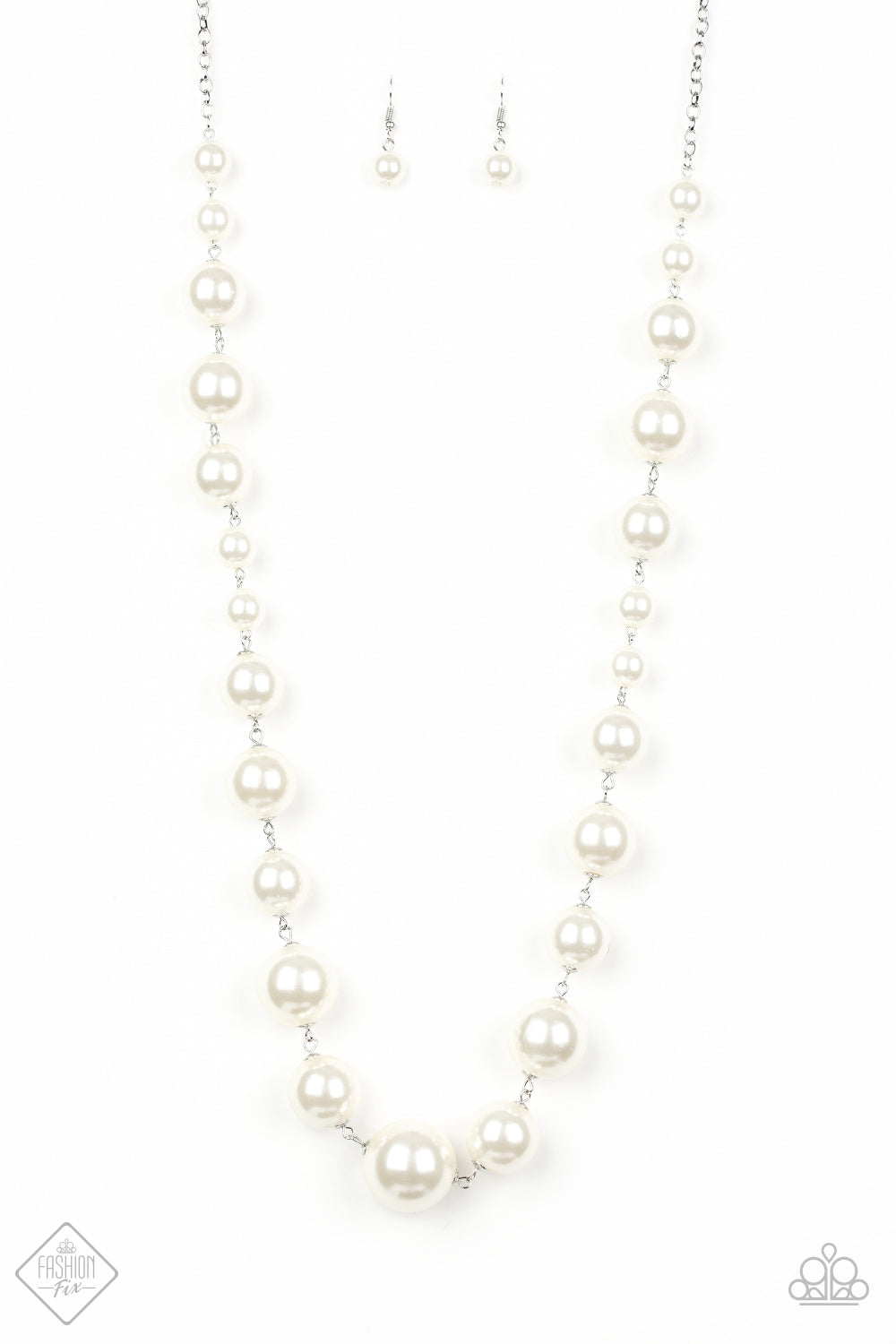 A strand of white pearls capped in silver swing boldly from the bottom of a silver chain. The varying sizes and haphazard placement brings a dramatic new twist to a timeless classic. Features an adjustable clasp closure.