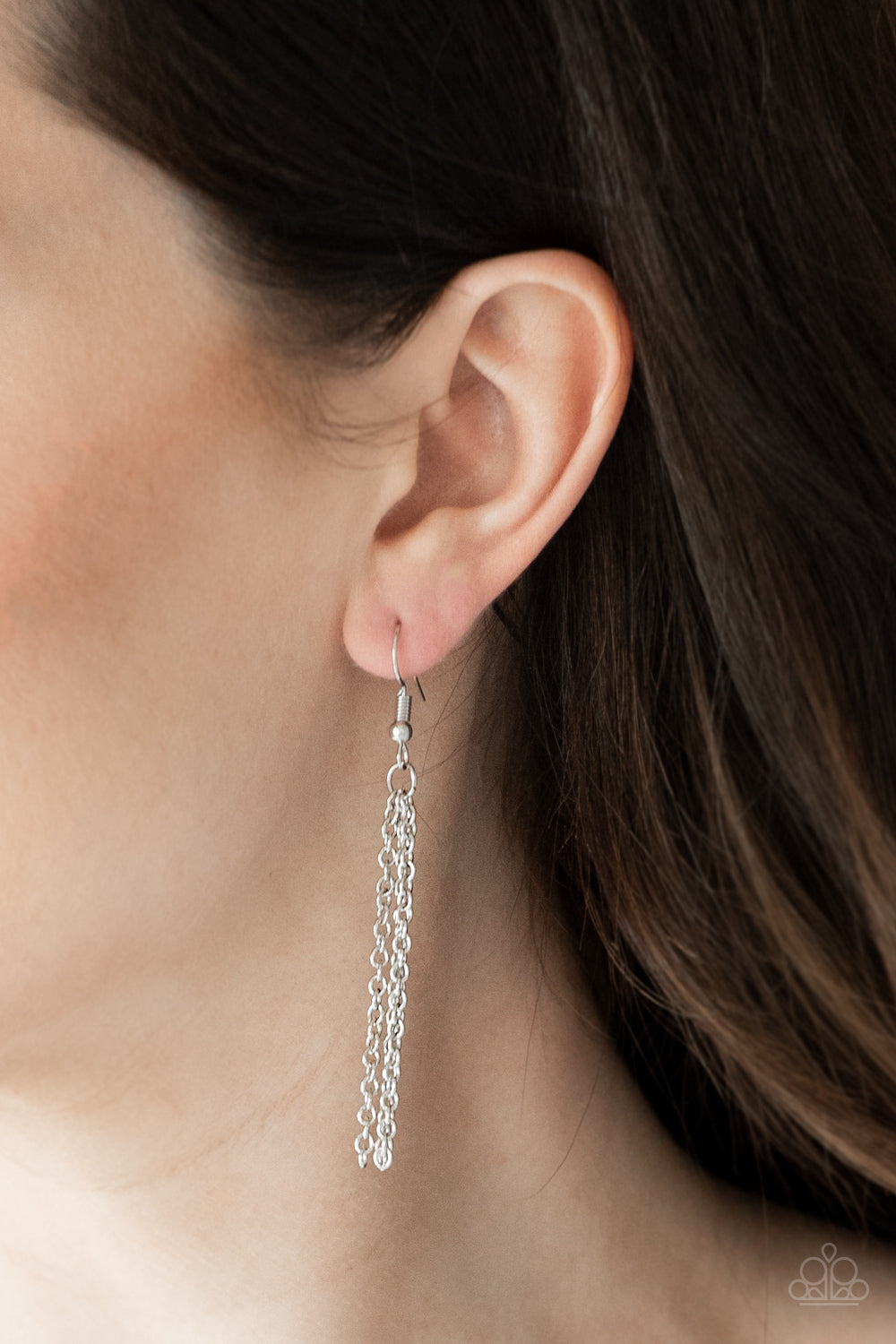 Swinging from a lengthened silver chain, a faceted pink bead gives way to a shimmery silver tassel for a whimsical look. Features an adjustable clasp closure.